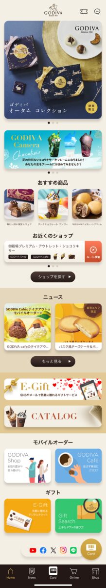 季節の商品はもちろん、キャンペーンや新サービスのご案内、お気に入りショップのお知らせや新ショップ情報など、ゴディバに関連する情報をまとめてお届けいたします。また、Special、Gift、For Meのカテゴリに合わせたコンテンツをご用意しております。その時の気分や用途に合わせて、ゴディバをよりお楽しみください。
