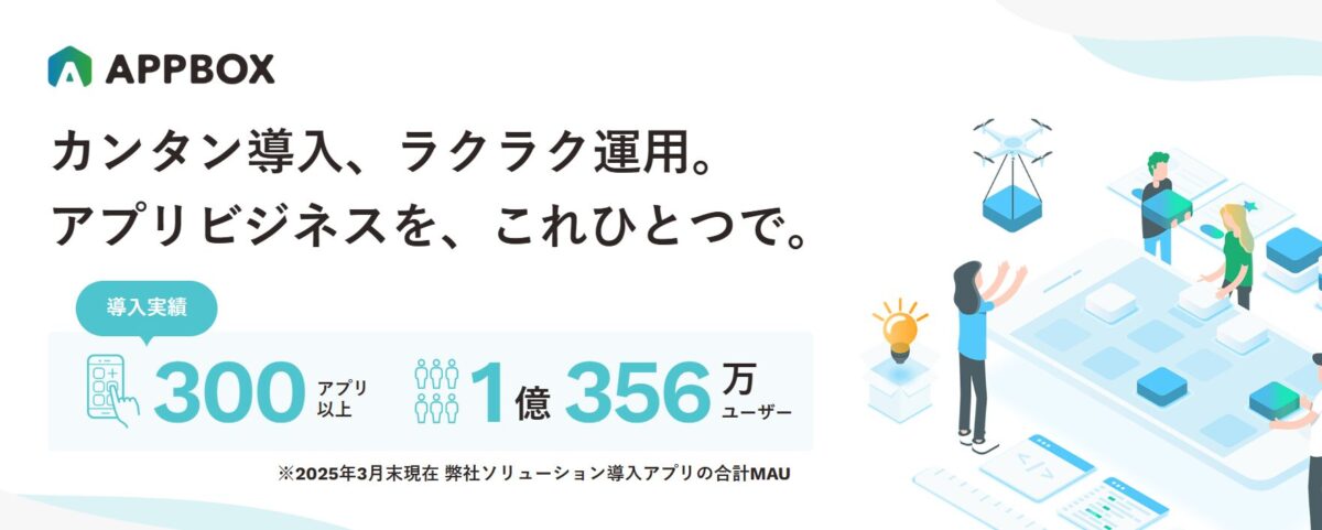 「APPBOX」は、株式会社アイリッジが提供するアプリビジネスプラットフォームです。小売・流通業界での導入実績が厚いほか、外部システムや各種他社ツールとの連携を前提としているため、拡張性に優れているのが特徴です。